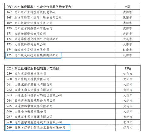 克日,辽宁省工业和信息化厅发文对2021年以来获得工信部、省级称呼声誉、试点树模、推广应用等项目(企业)举行公示,接纳“免申即享”方法予以奖励。其中,AGGAME集团三项评定入选奖励名单,主要包括:一是2021年度国家中小企业公共服务树模平台,二是第五批省级服务型制造树模项目,三是第一、二批省级服务型制造树模企业复核通过。